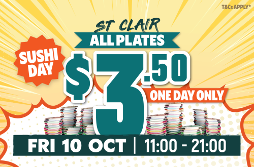 Read MoreSushi Train St Clair Date: 10/10/2025 (Fri)All Plates $3.50 Udon, Ramen, Rice Bowls, Soba, Sashimi and Drinks are…