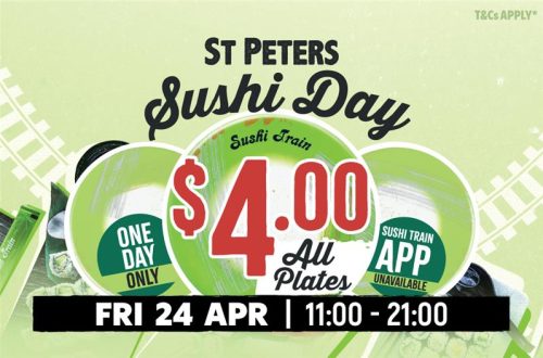 Read MoreSushi Train St.Peters Date: 24/04/2026 (Fri)All Plates $4.00 Udon, Ramen, Rice Bowls, Soba, Sashimi and Drinks are excluded…